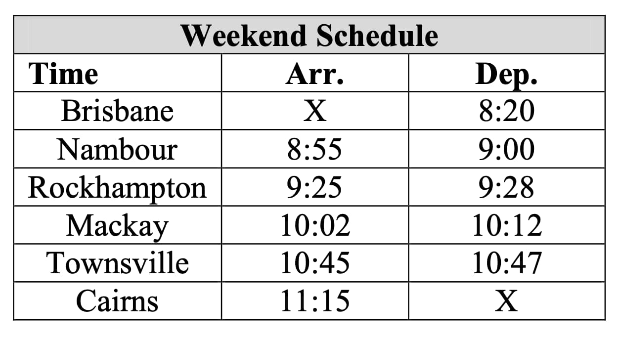 Look at the graphic. Due to problems in Mackay, what time is the train now expected to arrive in Cairns?